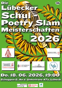 Im ersten Halbjahr 2026 finden die dritten Lübecker Schul Poetry Slam Meisterschaften mit sechs Lübecker Oberschulen statt. Mit dabei: Oberschule zum Dom, Katharineum zu Lübeck, Johanneum zu Lübeck, Geschwister-Prenski- Schule, Friedrich List Schule, Carl-Jacob-Burckhardt-Gymnasium. In Schul internen Poetry Slams die in den vergangenen Monaten an den Schulen ausgetragen wurden haben sich jeweils zwei Schülerinnen jeder Schule für den großen Abschluß Poetry Slam für ihre Schule qualifiziert. Der Abschluß Slam findet am Donnerstag den 18.06.2026 im Schuppen 6 Lübeck statt. Dort treten dann die jungen Schul-Poet:innen mit ihren selbstverfassten Texten im spielerischen Wortwettstreit gegeneinander an. Am Ende des Abend entscheidet sicher wer für seinen/ihren Text die höchste Punktzahl der Poetry Slam Jury erhält und damit für seine / ihre Schule den Meister:innen Titel der dritten Lübecker Schul Poetry Slam Meisterschaften erringt und die güldene Poetry Slam Trophäe überreicht bekommt.