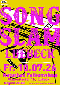 Slam A Rama präsentiert den SONG SLAM Lübeck – und das auf einer ganz besonderen Bühne! Am Fr. 10. Juli 2026 steigt die Sommer Ausgabe auf der schwimmenden Pontonbühne im idyllischen Flussbad Falkenwiese. Wir laden alle Musiker:innen ein, sich anzumelden und mitzumachen! ... und natürlich euch liebe Lübecker:innen und darüber hinaus rumzukommen und zuzuhören. Ob Singer-Songwriter, Pop, Rock, Jazz, Hip-Hop oder experimentelle Klänge – alle Musikstile und Instrumente, Loop Stations, PlayBacks sind willkommen. Mitmachen können Solo-Künstler:innen, Duos und Trios, die mit ihren eigenen Songs antreten. Keine Coversongs, keine AI – es geht um echte, unverfälschte Kreativität! Eine Publikums Jury votet, wer die Bühne gerockt hat und den Song Slam Lübeck für sich entscheidet. Lasst uns zusammen einen unvergesslichen Abend haben und die positive Energie der live Musik feiern.