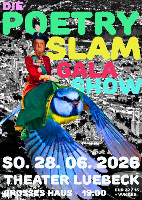 Der Lübecker Slam A Rama Poetry Slam ist zurück mit dem Bühnenliteratur highlight der Saison! Bei der “Poetry Slam Gala Show“ treten 5 Topp Poet:innen der A-Liga der Wortakrobat:innen der deutschsprachigen Slam Szene gegeneinander an um dem Publikum zu zeigen wie ihre Texte einen ganzen Saal und eine fünfköpfige Publikums-Jury zum Weinen, Schreien, Zittern oder Lachen bringen können. Und manchmal auch zu allem gleichzeitig. In feinster Theateratmosphäre, zurückgelehnt in bequemen Sesseln, dürfen Sie sich aber nicht nur über die besten Poet:innen, sondern auch noch über ein exzellentes musikalisches Rahmenprogramm freuen. Mehr Genuss geht nicht! Mit: Matti Linke, Team Wagner & Wagner (Lisa Pauline Wagner und Heidi Wagner), Tobias Beitzel, Uli Höhmann und Jasmin Brückner. Musik feature YUNUS.
